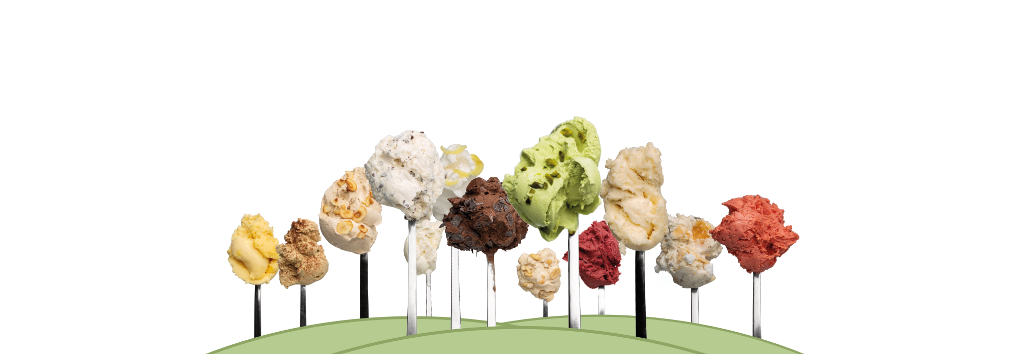 Diese tiefgefrorenen Erdbeerbäume warten darauf gefällt und geschlemmt zu werden. Zudem haben wir noch Vanille-, Schoko- und Pistazienbäume im Sortiment.